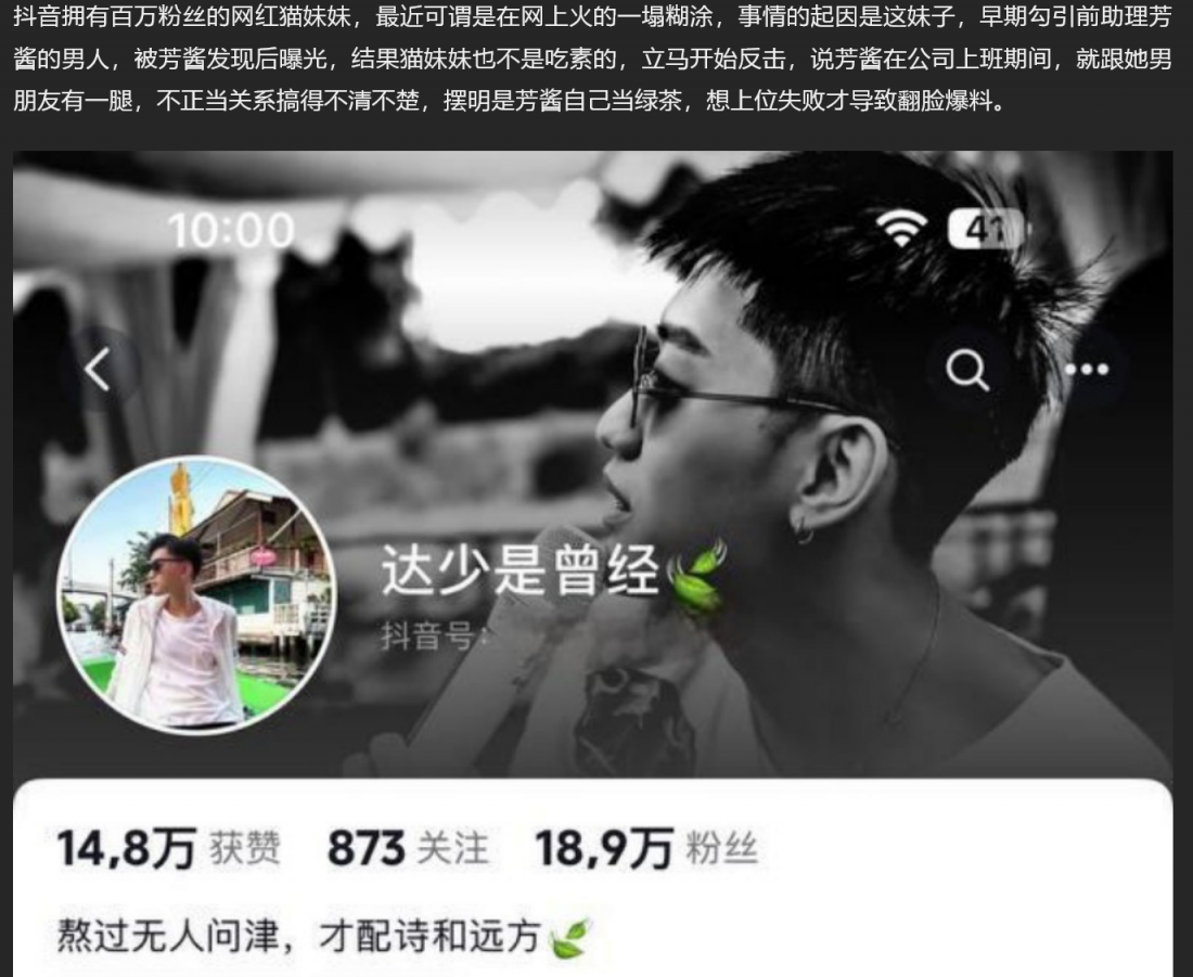 【4】☘抖音百万网红 猫妹妹 被前助理芳酱曝光 勾引自己男人 包养男模玩群P染病 绿茶婊互撕震惊粉丝!