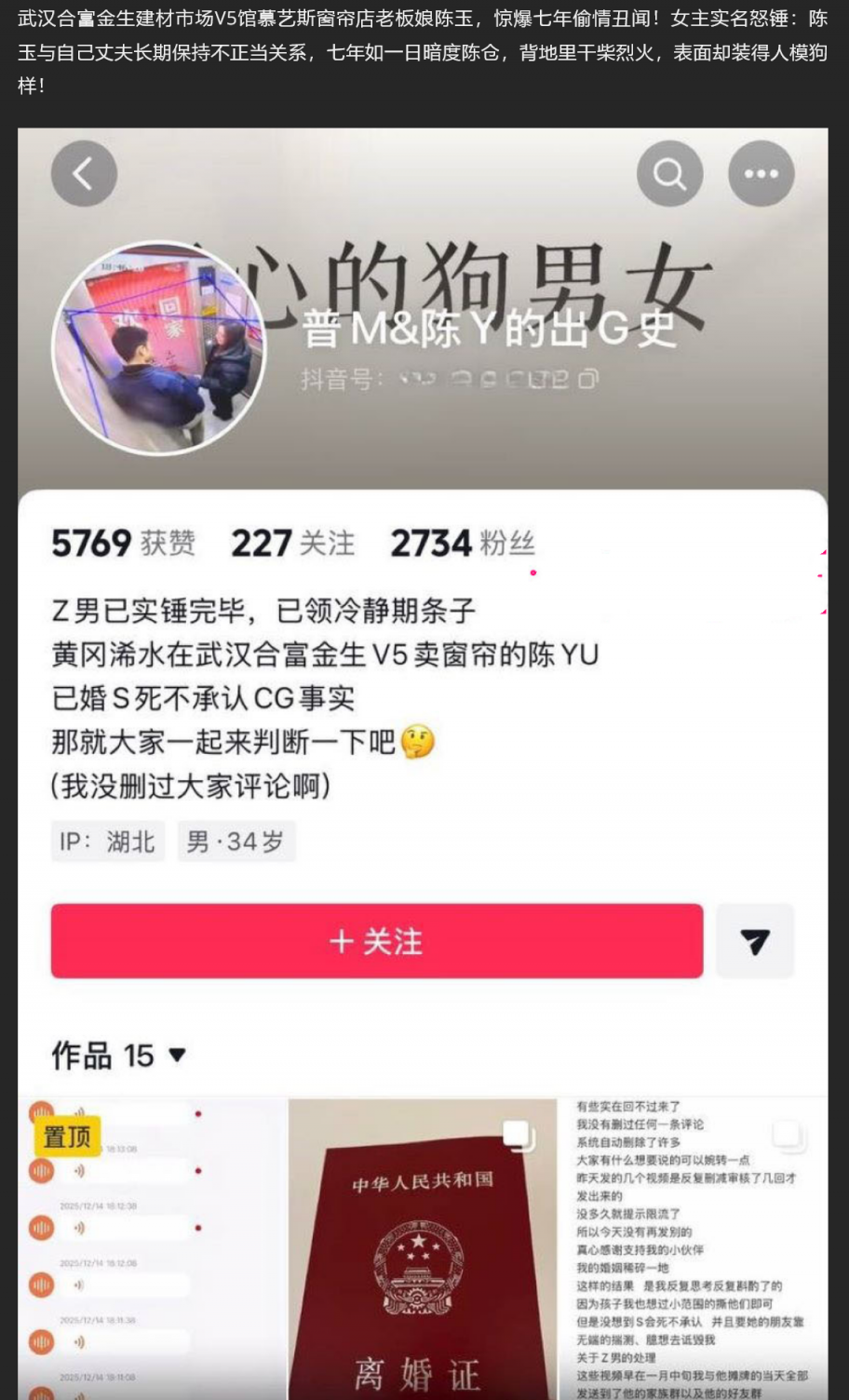 【3】✨武汉V5馆慕艺斯窗帘老板娘 陈玉 七年偷情实锤 背地里干柴烈火 表面却装得人模狗样 录音性爱视频疯传!