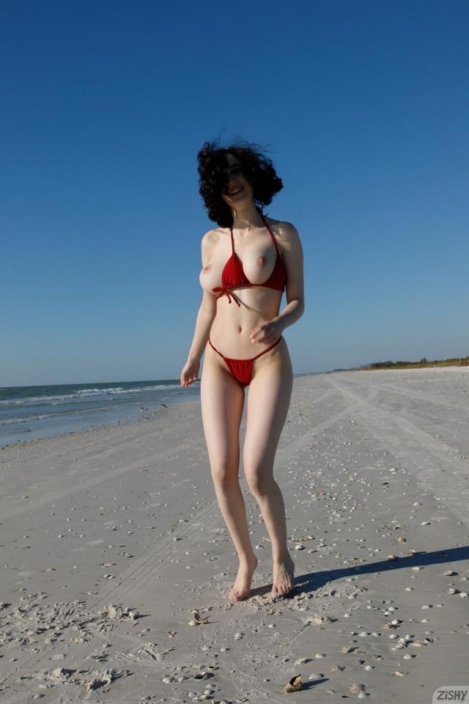 [欧美] 户外脱掉内衣,露出她修长的身材和可爱的小乳
